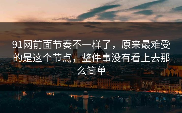 标题:91网前面节奏不一样了,原来最难受的是这个节点,整件事没有看上去那么简单 在互联网时代,信息的流动和节奏的变化总是令人目不暇接。特别是像91网这样的知名平台,其运营和内容发布节奏的变化,往往引发了广大用户的关注和讨论。今天,我们将深入...