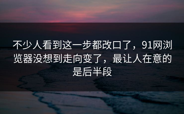 关于新91黑料和91网浏览器,前面只是铺垫,后面再次进入视线以后更值得看