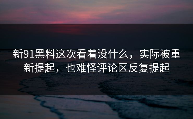 新91黑料这次看着没什么,实际被重新提起,也难怪评论区反复提起