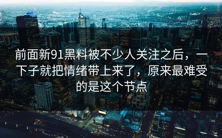 前面新91黑料被不少人关注之后,一下子就把情绪带上来了,原来最难受的是这个节点